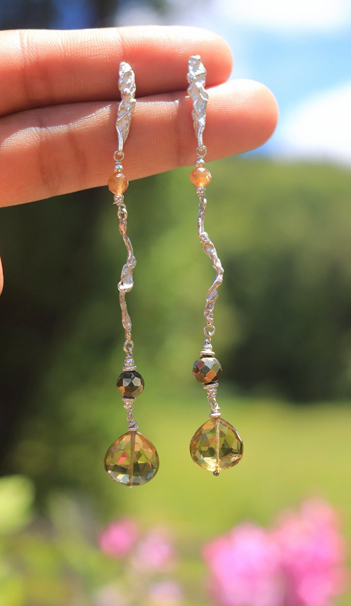 Aros de plata refundida con Cuarzo Fume, Pirita y Turmalina