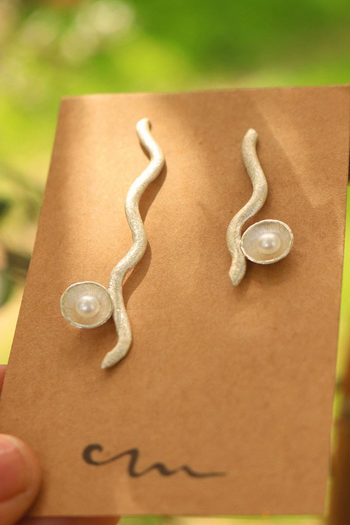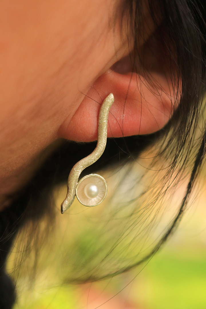 Aros asimétricos de plata con Perlas